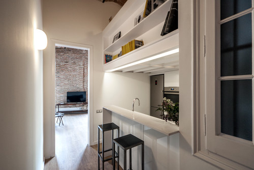 Distribución. Cuando hay poco espacio, la coherencia parte de salirse de lo convencional para maximizar las posibilidades de la vivienda. La cocina, por ejemplo, se puede expandir hacia el pasillo para distribuir la zona de estar-comer en un espacio más despejado. De esta forma, conseguirás que la casa parezca más grande.
