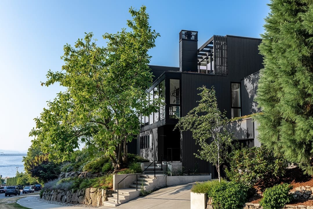 Otro de los objetivos que se marcó el equipo, consistía en crear espacios habitables más abiertos en esta casa de 445 metros cuadrados con tres pisos y cuatro habitaciones con interiores de Kathleen Glossa, fundadora de Swivel Interiors. Las ventanas del piso al techo y tres juegos de puertas plegables conducen a la terraza en el piso principal, abriéndose al panorama excepcional hacia los árboles, el lago y el Monte Rainier. De hecho, la combinación de vidrio y cajas sólidas que caracteriza la casa permite conexiones entre el interior y el exterior.